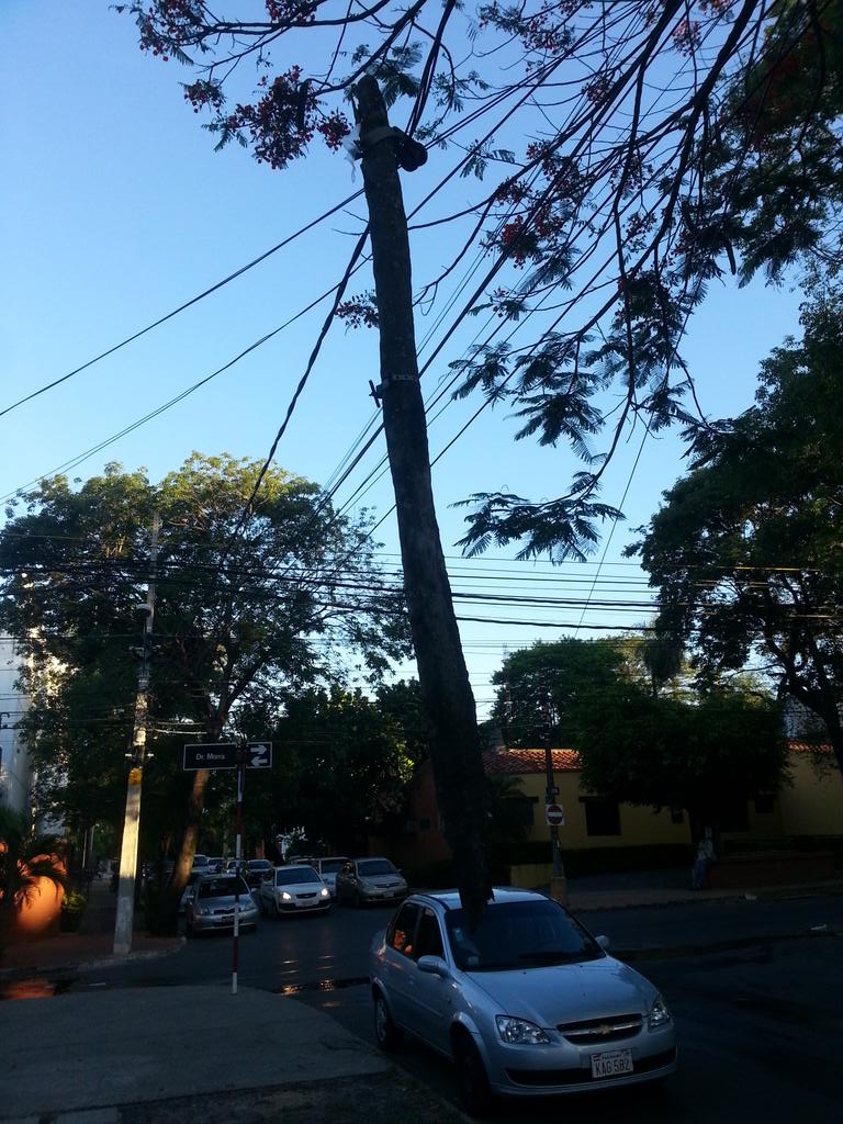Peligroso 03 de diciembre de 2014 - 06:08 - PAÍS: lo que nos quebranta Pedazo de columna de tendido eléctrico colgando hace días. Andrade esq. Dr Morra Facebook Twitter Whatsapp Email